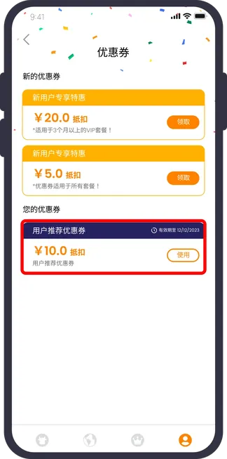 成功使用推荐码注册后,你将获得代金券,可用于抵扣购买金额!